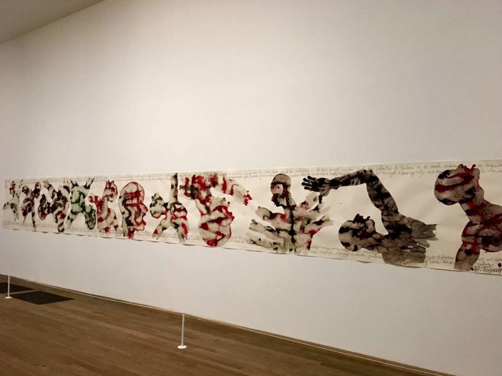 There are diverse art pieces in Tate Modern covering sculpture, painting, drawing, print, mixed media, short film, and installation. Artists were inspired by nature, humanity or a different area of everyday life events across the world including social conflicts, social status, urban life, politics, and wars. The images and videos below show a different style of presentation involving strong or soft texture, dark sense of humour, sarcasm, exaggeration, imagination, the use of nostalgia element, and futurism.