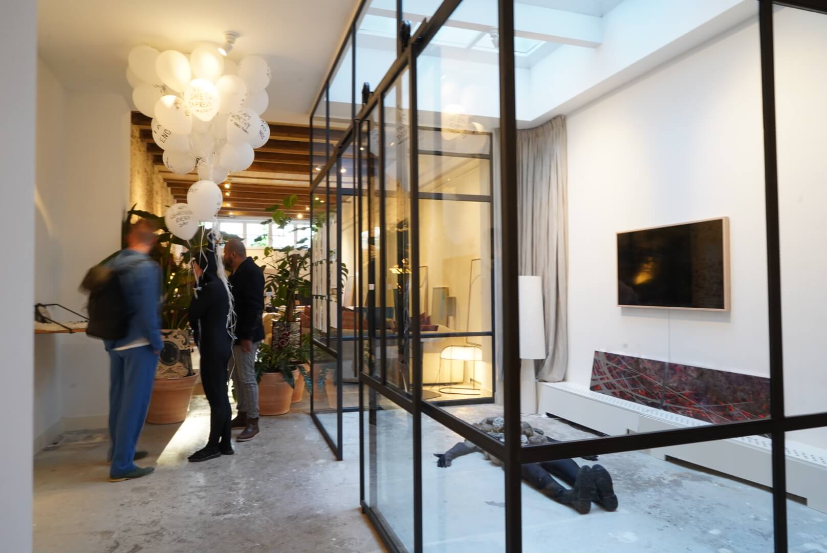 The venue is in fact a regular office space where the owner offered to transform pop-up art during that weekend.