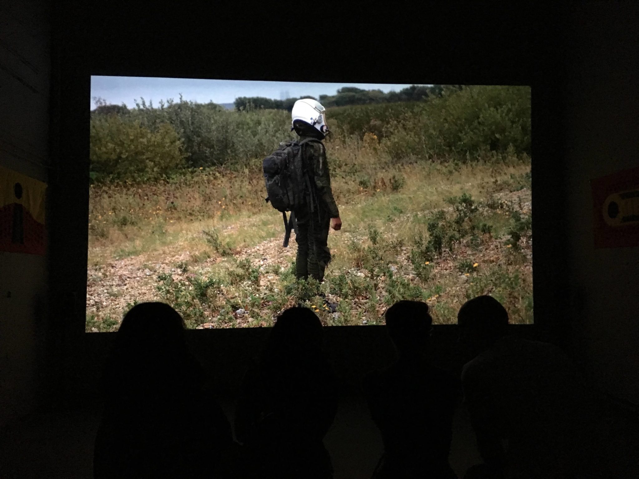 There are many symbolic elements we can see in the final phase of Relic Traveler: Sankofa, as Larry constructed. The Pan African flags (significant colours which use on most African Union flags) and a voice-over with a significant British accent represent 2 cultural elements. The green military costume and an astronaut helmet associate with sci-fiction and it signified the purpose of looking for a new resource, technologies, and futurism. A child signified continuity. The exhibition covers a child, black human, and female elements, these identities signified weakness on social discourse and the lower social status. Covering these identities on the screen seems an empowering act.